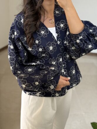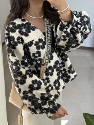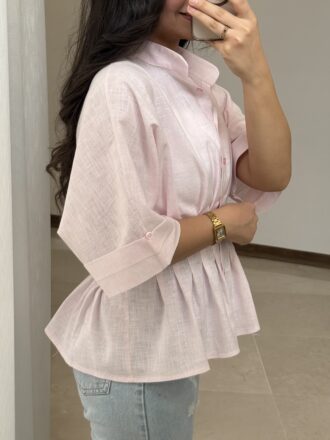 شومیز نیلو با پرچه لینن اسلپ، ترکیبی از ظرافت و راحتی برای استایلی خاص و متفاوت ایجاد کرده است. جنس